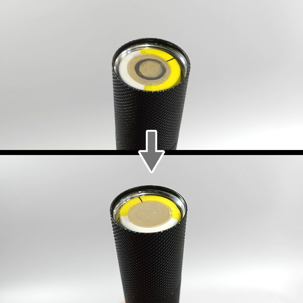 【※ご注意】ライトが点かない時は、電池⊖面の黒い汚れを汚れてもよい乾いた布などで拭き取って、再度お試しください。