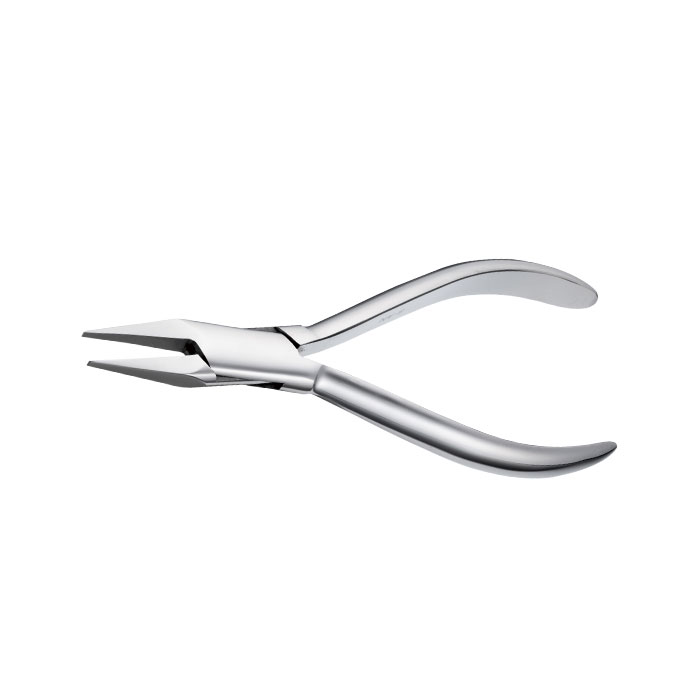 - 先端が平らで、挟み込む面は、根元にかけて幅広になる平ヤットコ。 先細と比べて挟む面積が広い為、対象物を安定して挟み込むことができ、滑りにくい。