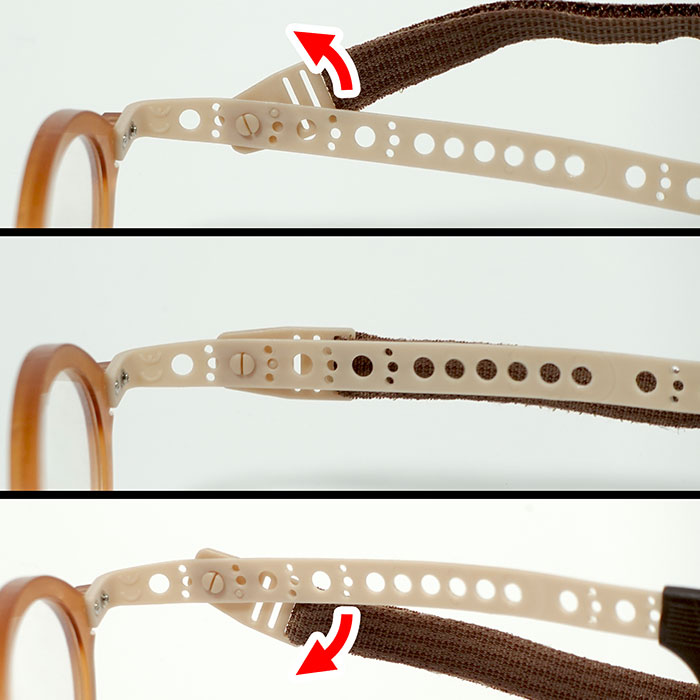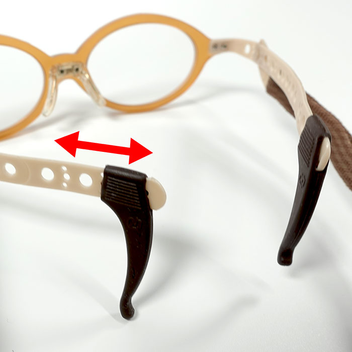 肌当たりの良い、やわらかな樹脂テンプル。カットすることで長さ調整もできます。