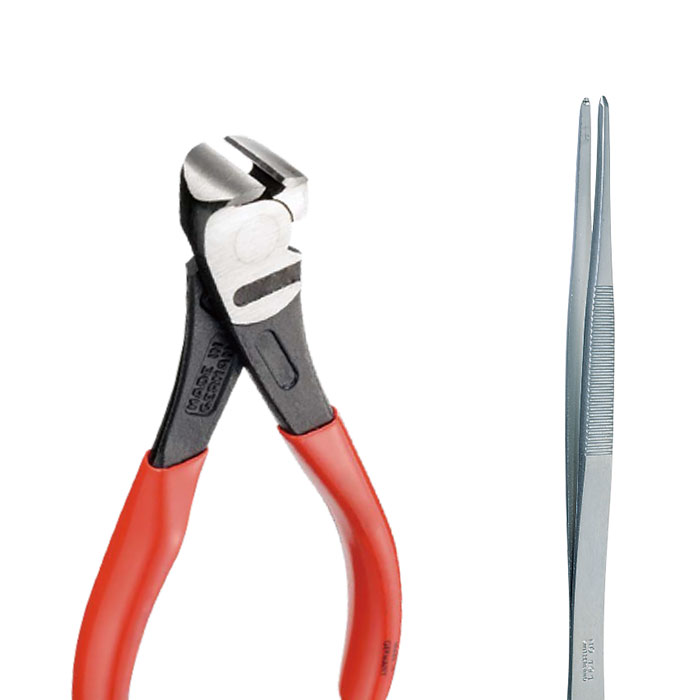 【ニッパー・ピンセット】力が強く伝わる汎用性の高い喰い切りニッパーと、ネジ溝付きのピンセット